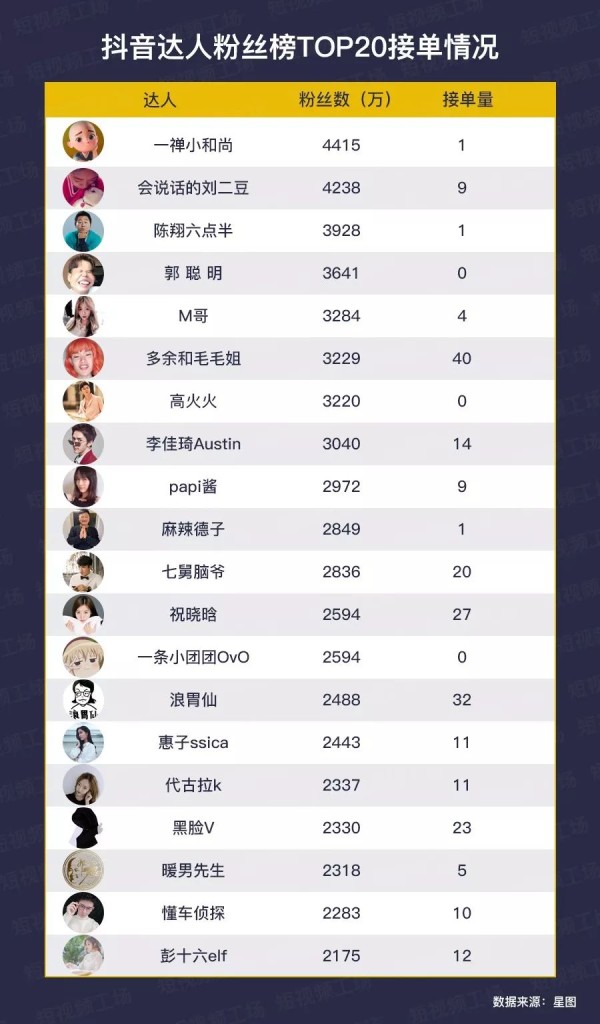 短视频工场筛选了粉丝数超过千万的101位抖音达人作为样本分析,并选择具有代表性的现象级达人进行具体分析,带你看看目前的达人广告接单情况。