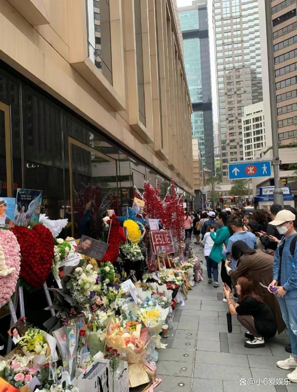 在文华东方酒店楼下,昨日还是一片寂静。然而,今天却已是花团锦簇,香气四溢。一束束鲜花簇拥着张国荣的照片,每一张照片都记录着他生前的风采,每一个字都寄托着粉丝们的思念。这些鲜花、照片和字迹,仿佛构成了一幅生动的画卷,诉说着粉丝们对张国荣的深情厚意。