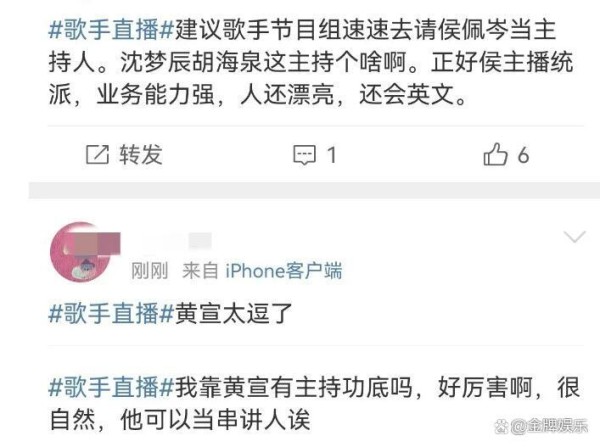 歌手节目的主持人水平太差!唯有侯佩岑可以火速救场