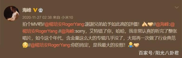 不久前,杨培安也再次转发这条微博,通过回复的方式悼念海峰称:“我MV下个月就要拍了… 你怎么可以就这样走了呢…”