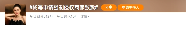 近日,#杨幂申请强制侵权商家致歉#的话题冲上热搜。