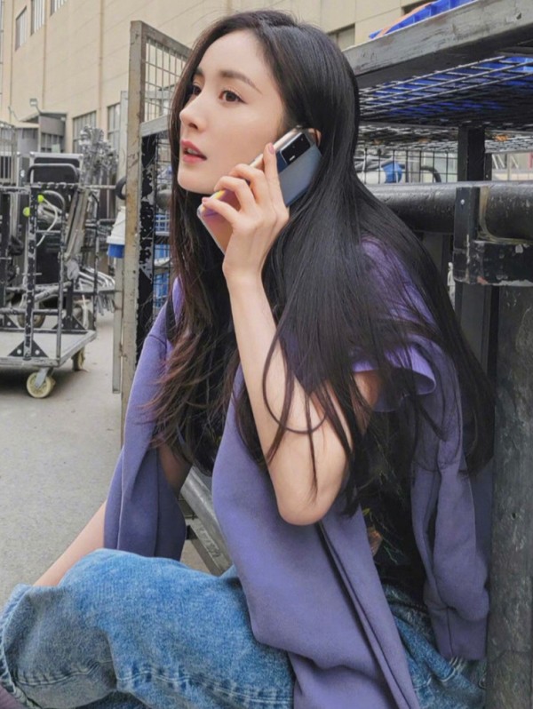 相比于古力娜扎的服装搭配,杨幂的这套穿搭则更显随性。简约印花T恤搭配直筒牛仔裤,再随意地将长袖卫衣披在肩膀,造型上更多了一份俏皮感。