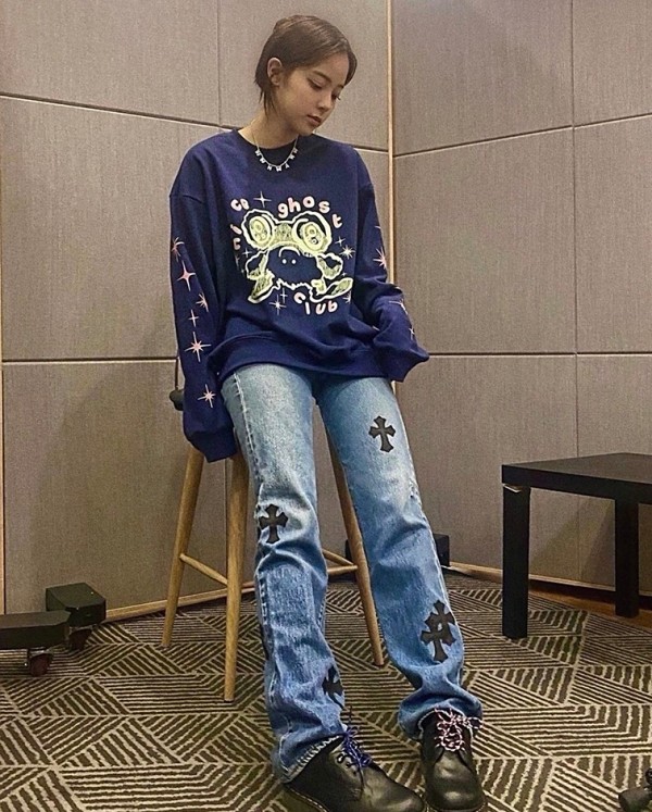 近期,人气小花古力娜扎以长袖卫衣搭配牛仔裤出镜,不仅展现出其清纯可爱的甜美气息,更打造出休闲感十足的高街风造型。