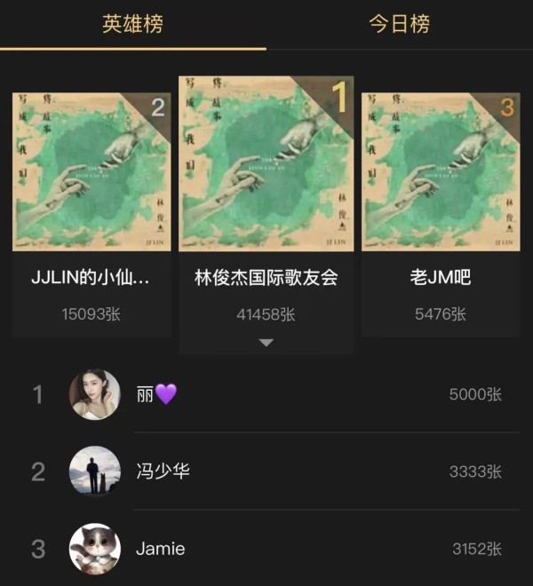 任意点开上述几张数字专辑的“英雄榜”都可以看到各家粉丝组织和“大粉”们成千上万的专辑购买记录。