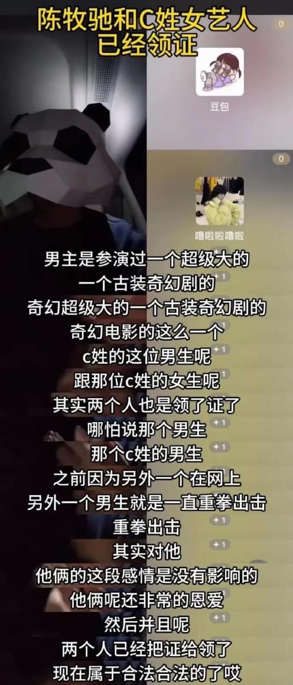 娱记爆料的第二位是陈姓艺人,陈牧驰和陈冰,两人也是悄悄领证。如果说潘粤明悄悄领证是为了低调,陈牧驰悄悄领证就纯属是不想惹麻烦。