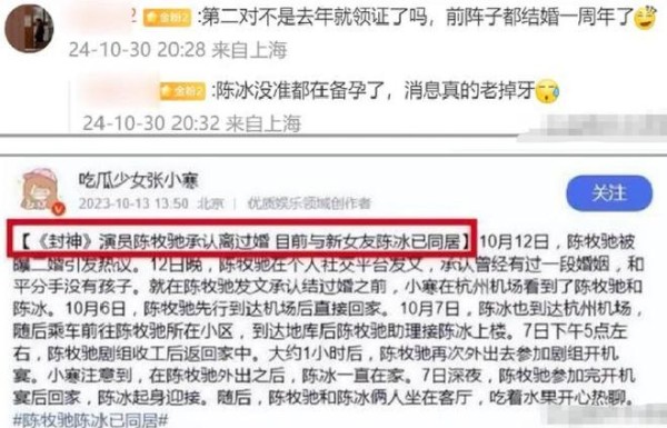 至于陈牧驰那些绯闻,其实归根结底都是无伤大雅的小事,不管是同性还是离婚还是傍上富婆等等,都是个人行为。对于网上传言的一些绯闻他也及时做了辟谣,而且他是在离婚之后才跟陈冰交往的,所以不存在出轨问题。