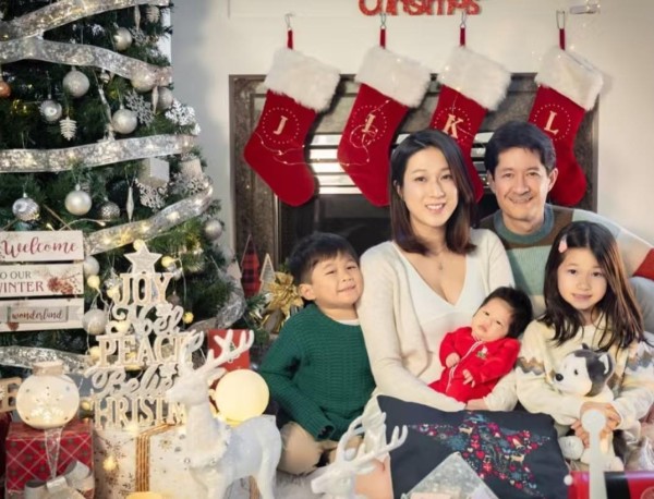37岁钟嘉欣一家牵手同框,夫妻俩同款短卷发,母女贴脸依偎似姐妹