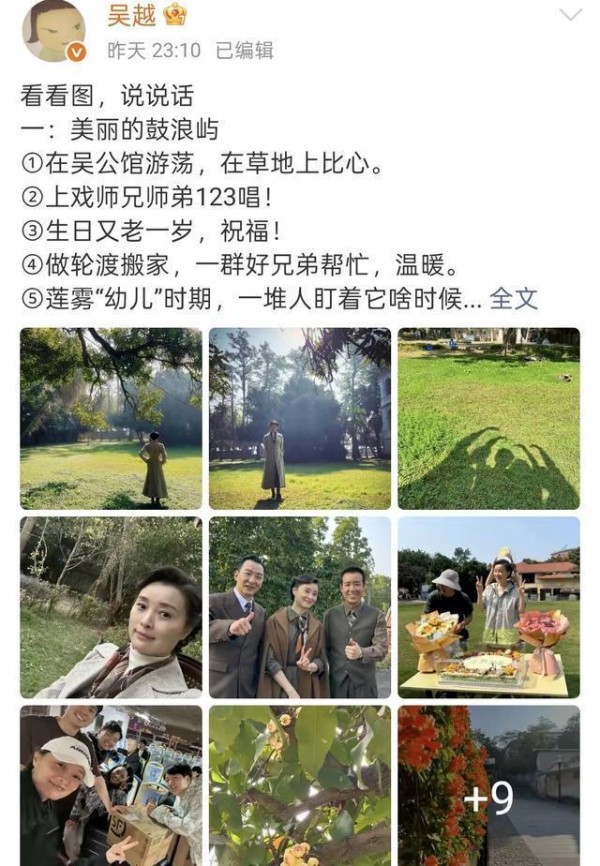 10月15号那天,吴越在社交媒体上晒出了18张美照,里头有她过生日的照片,还有拍戏时的抓拍,旁边还站着一群帅气的明星,这日子过得也太美了吧!