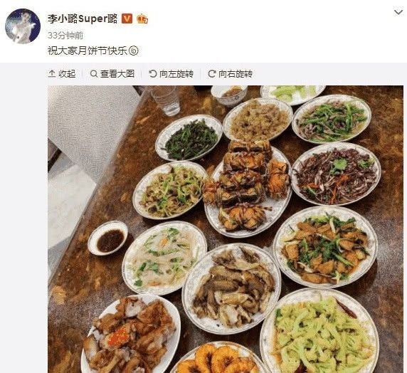李小璐晒中秋家宴,贾乃亮送中秋祝福,一桌团圆饭透露出家的温馨疑似李小璐朋友圈曝光,网友:贾乃亮呢?心疼甜馨