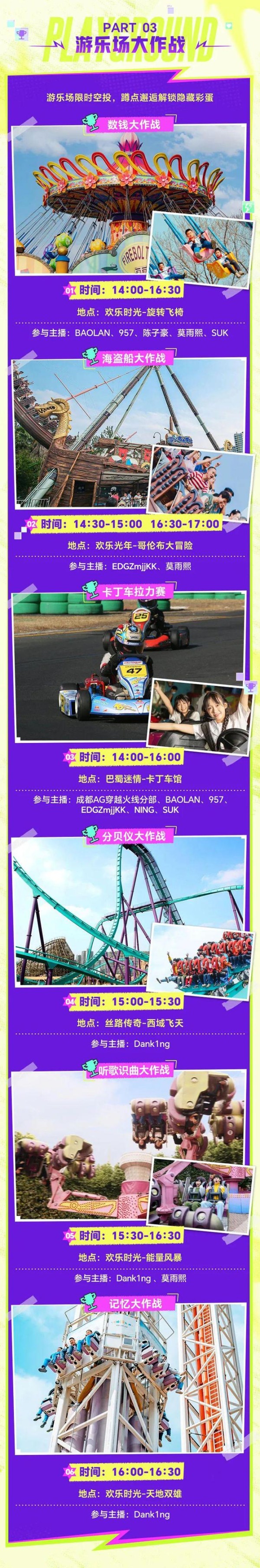 6.受当天HYPER电竞嘉年华活动影响,抓壮丁、欢乐大巡游等园区演出可能受到影响或调整时间,请以当天园区实际公告为准。