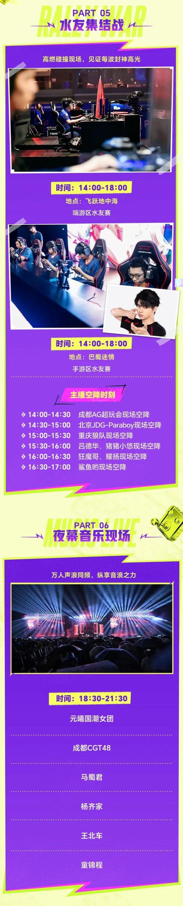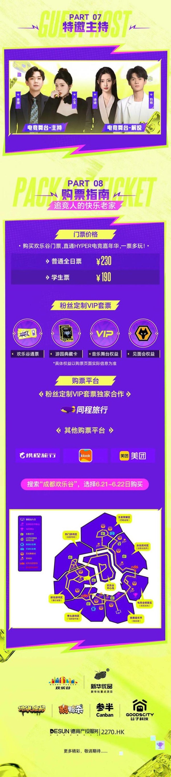 6月21 - 22日 ,成都欢乐谷 ,花车巡游、电竞全明星赛、宠粉见面会等超燃活动来袭 还有半个电竞圈的明星阵容,涵盖多游戏项目,周边快闪、音乐现场也安排上~