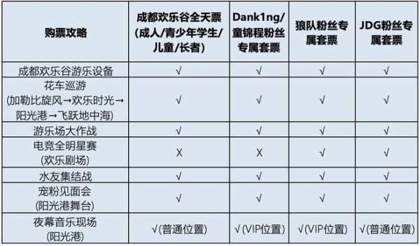 4.JDG粉丝专属套票:成都欢乐谷门票1张、成都欢乐谷游乐项目不限次游玩、夜幕音乐节(普通观演区)、欢乐剧场电竞全明星赛观赛、欢乐剧场JDG粉丝见面会;