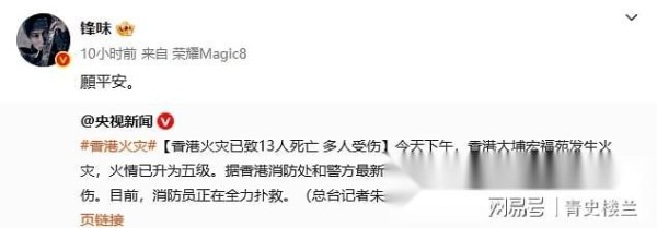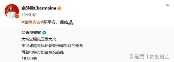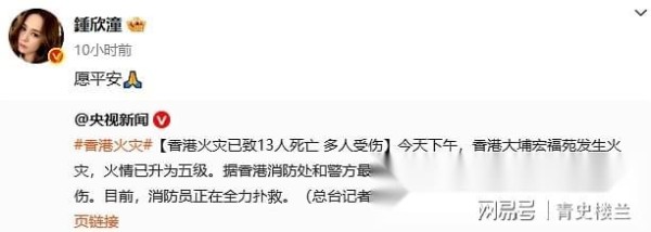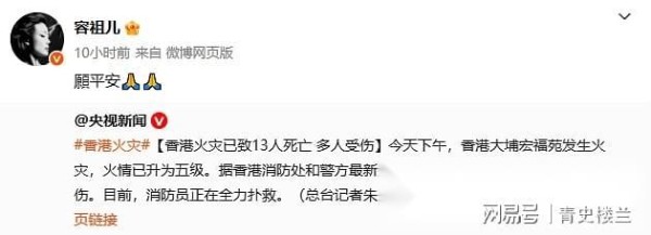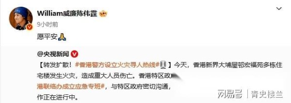 谢霆锋、佘诗曼、陈伟霆等明星为香港灾民祈福,明火已逐渐扑灭