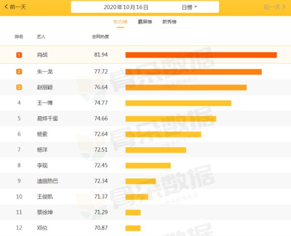 好了,以上就是今天为你们带来的最新人气榜单啦,不知道你们还想看什么样的榜单,顺带一提,赵丽颖这次的热度名次紧挨王一博,话说你们是不是有联想到什么呢?欢迎在下方留言评论,回见啦~