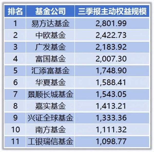 从规模增长量来看,永赢基金和中欧基金的主动权益规模表现尤为抢眼。根据Wind数据统计,永赢基金和中欧基金前三季度主动权益规模增长量均超700亿元,富国基金、广发基金、易方达基金的规模增长量均超350亿元,位列行业前五。