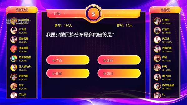 答题闯关很适合穿插在会议中间环节,可以利用答题闯关进行现场知识和技能的PK;灵活的题库配置,紧张刺激的现场答题新方式,题目答案的自定义设置,让活动变得更有创意。
