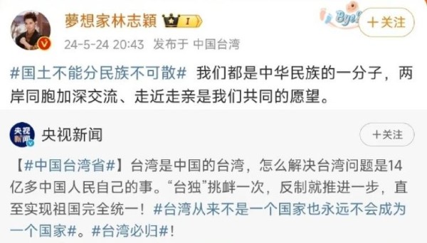 据微博数据统计,林志颖相关帖文下获赞最高的前 5 条评论中,4 条直接质疑其表述模糊性。有网友留言:"请参照央视格式补充台湾归属声明,否则视为立场不明。