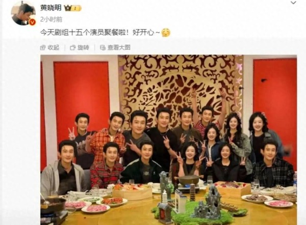 24号中午,黄晓明在自己的社交账号上发了一张和朋友吃饭的照片,还配了文字说:“今天剧组十五个演员一起吃饭啦!超开心~”他这一发,立刻就让网友们炸开了锅。大家都开始猜这是哪个剧组的聚餐呀?都有谁参加了?吃饭的时候气氛好不好?