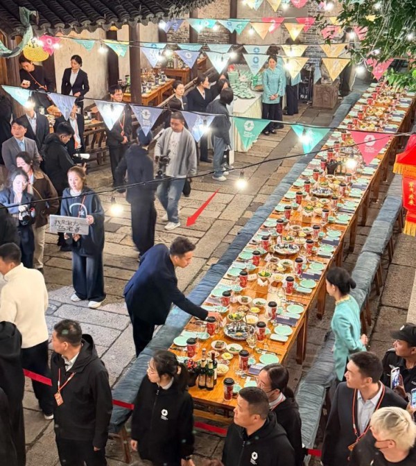 这场“长桌宴”摆在户外,许多普通游客也都见到了现场的明星人物。