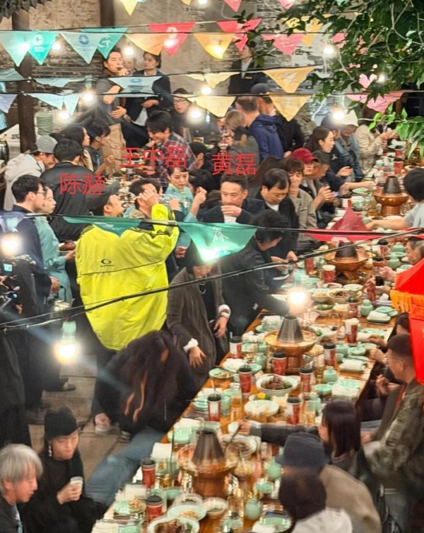 其实早在昨天,“长桌宴”就开始筹备了,刘欢老师也在现场,他们在某个室内聚餐,被网友偶遇了。