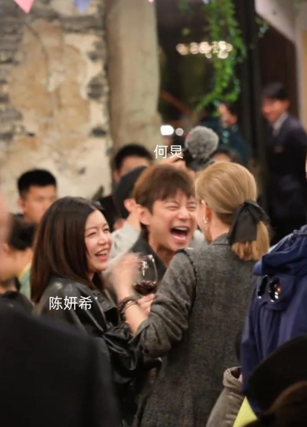 陈妍希手里拿着红酒,轻轻一晃,先向何炅敬了一杯。