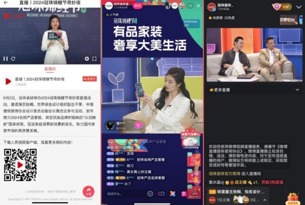 以实际行动助力国民美好生活!冠珠瓷砖积极响应国家“以旧换新”政策,继上周“2024冠珠锦鲤节首发夜”再度发力,携手人民日报发起“2024冠珠锦鲤节奇妙夜”直播活动。冠珠明星屋主张桐、设计名师黄志达亲临冠珠直播间,与观众面对面分享交流家装心得,再掀家装行业直播热潮。