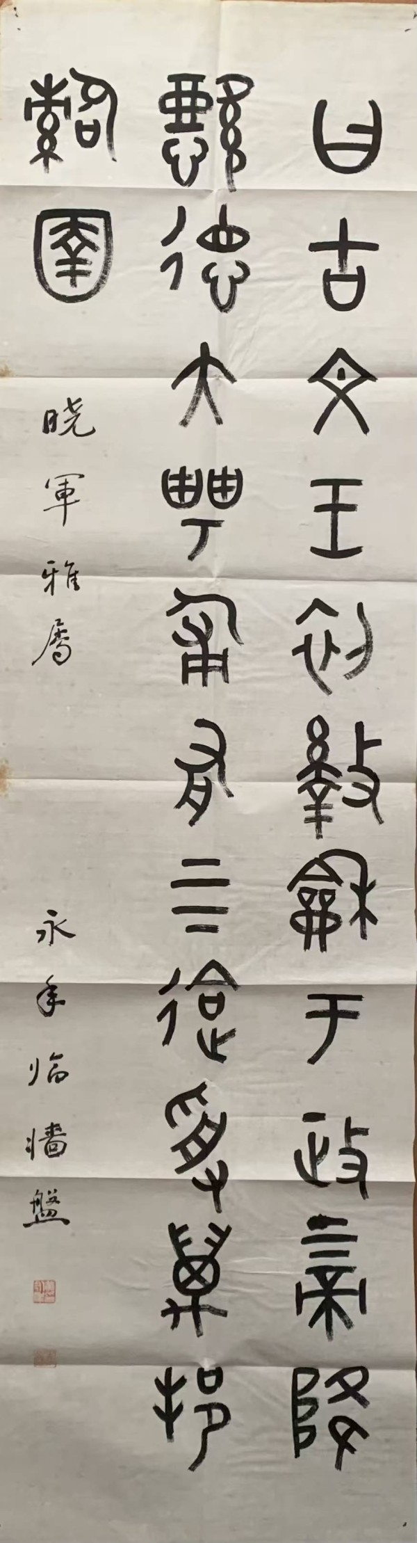 黄先生手书的这幅《墙盘铭》,早已成为寒舍书斋的镇斋之宝。见其如见先生,衷心感谢黄先生的赐墨及勉励。
