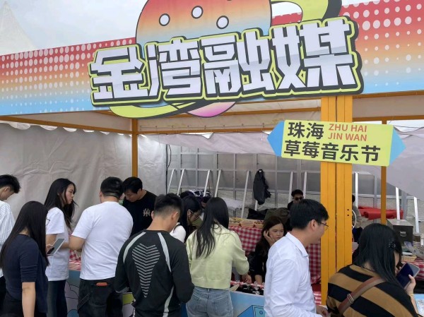 音乐节现场,设置了餐饮区、寄存区、移动厕所、充电站等配套服务设施,为乐迷提供便利。金湾融媒在现场设有互动摊位,免费发放扇子、歌手印章等文创纪念品,进一步丰富乐迷体验。一系列从细节着手的暖心服务收到了乐迷的热情点赞。