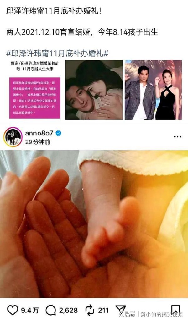 邱泽许玮甯补办婚礼,3个月的儿子腿长逆天,颜值随爸妈开挂