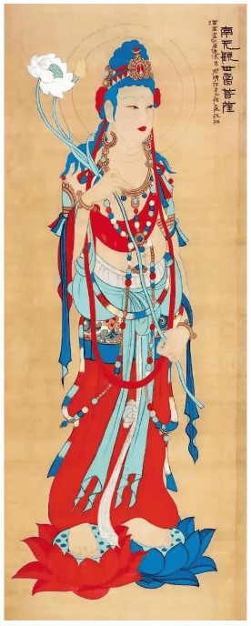 天女的裙子是艳红的,但飘带是浅蓝的;菩萨的脸是白的,但眉毛是墨黑的;连头发上的珠子,都是 “红配绿”—— 但就是不土,因为颜色的深浅、面积的大小,都卡得刚刚好。这就是咱中国人刻在骨子里的审美:讲究 “平衡”,不是 “一味淡”,也不是 “一味艳”,是 “浓淡刚好戳中眼”。