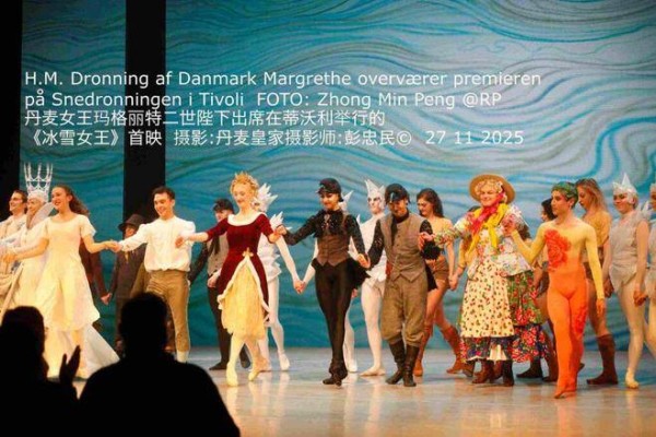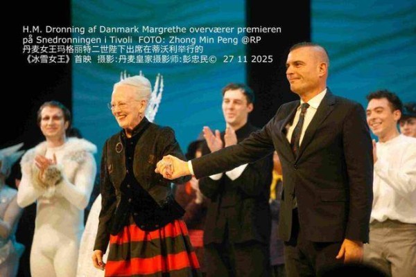 本网《丹麦皇家》杂志2025年11月27日哥本哈根市讯(丹麦皇家记者:彭忠民;特约记者 :王瞻远,廖子淇)2025年11月27日,丹麦玛格丽特二世女王在哥本哈根蒂沃利音乐厅出席童话剧《冰雪女王》首演。