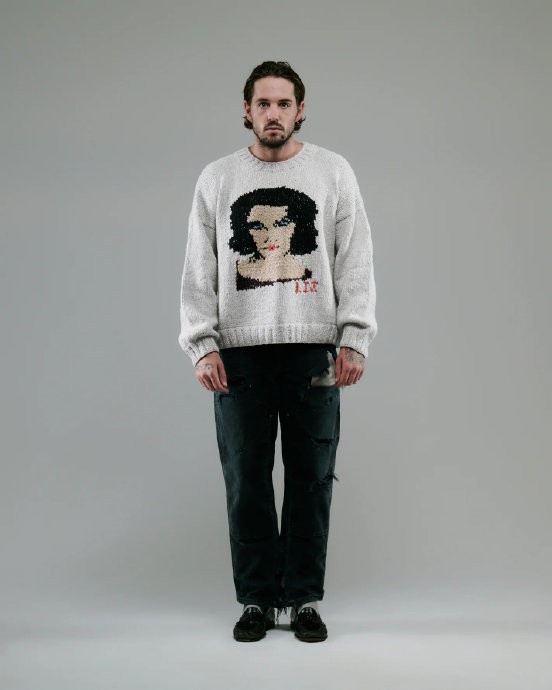 Jacob Elordi 新采访造型,身穿Paly Hollywood 针织毛衣,很美的毛衣,价格却很不美丽。
