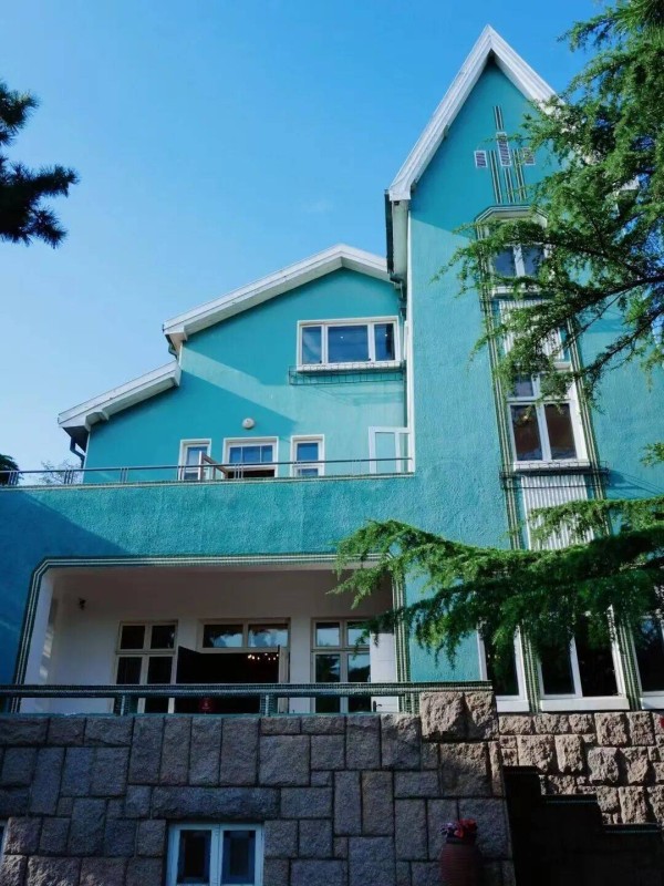 公主楼的建筑语言是跳跃的诗行。那蓝绿色的尖顶在八大关以红瓦为主的建筑群中格外醒目——不是地中海式饱和的蓝,也不是中国园林温润的绿,而是一种介于两者之间的独特色调,像是把青岛的海与天空揉碎调和而成。