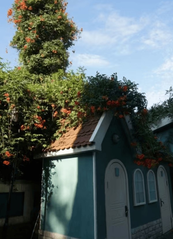 公主楼的庭院本身就是一幅流动的画卷。春天,院内的樱花与外墙的蓝绿色形成温柔对比;夏季,爬山虎悄悄爬上石墙,为建筑披上清凉的绿衣;深秋则是这里最辉煌的时刻——居庸关路的银杏树全部转为金黄色,落叶铺满小径,公主楼仿佛被金色的海浪包围。
