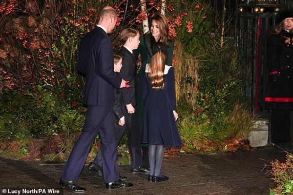 当地时间12月5日晚,威廉王子带着他的三个孩子,乔治小王子、夏洛特公主以及路易小王子,来到了威斯敏斯特大教堂,和正在那里忙碌的妻子凯特王妃会合。