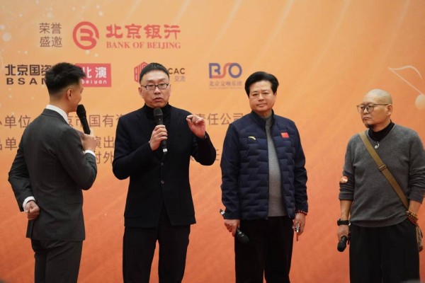 北京新年音乐会艺术总监甲丁(左二)介绍今年音乐会曲目策划。北京日报客户端记者 方非摄