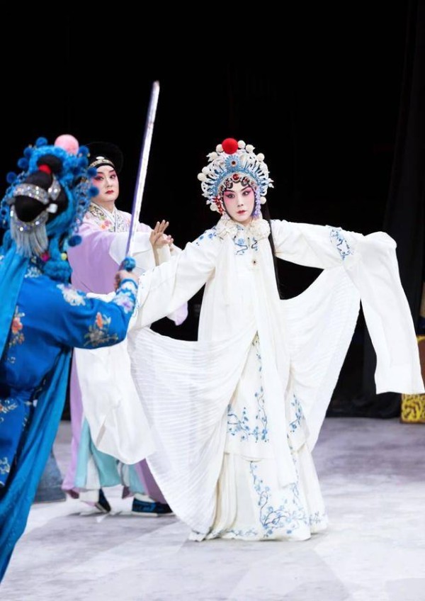 “游湖”一折,只见她身着素雅戏服,步态轻盈如春风拂柳,眼神流转、举手投足流露的尽是千年修炼后初入人间的澄澈与欣喜,将初涉人间的白素贞对红尘烟火的向往诠释得纯粹动人。而到了“端阳酒变”,她在雄黄酒力下的挣扎与惊惧,通过急促的锣鼓点与细腻的身段结合,从指尖颤抖到身形摇晃,将人妖殊途的宿命焦虑演绎得入木三分。
