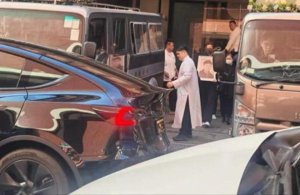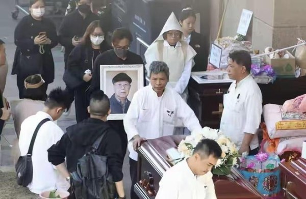 马国明父亲的棺木被抬出来的画面曝光,马国明捧遗像跟在棺木后面,他的妻子则跟在他身后。马国明情绪很低落,送殡队伍也没几个。旁边穿孝服的还是别人的家属,在排队出殡。