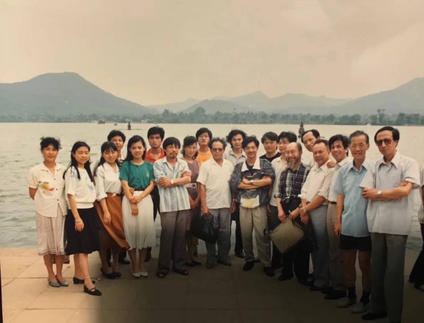 1990年6月,摄于杭州三潭印月。前排左四为卢文丽,前排右四为谢冕。