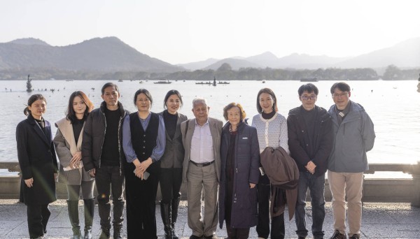 2025年12月,摄于杭州三潭印月。左五为卢文丽,左六为谢冕。