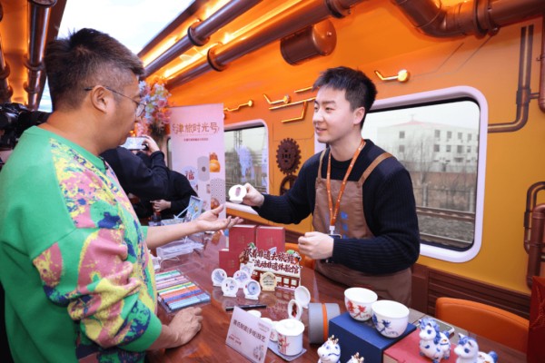 2025年12月12日,由天津市文化和旅游局、天津旅游集团联合策划的“跟着非遗去旅游——‘津旅时光号’非遗与旅游融合”示范活动成功启动。全国首列主题娱乐沉浸式文旅专列“津旅时光号”成功化身“流动非遗体验馆”,在珍奇花园俱乐部车厢为乘客带来了一场别开生面的津味非遗盛宴,活动广受市民游客好评,成为天津文旅融合创新发展的又一生动实践。