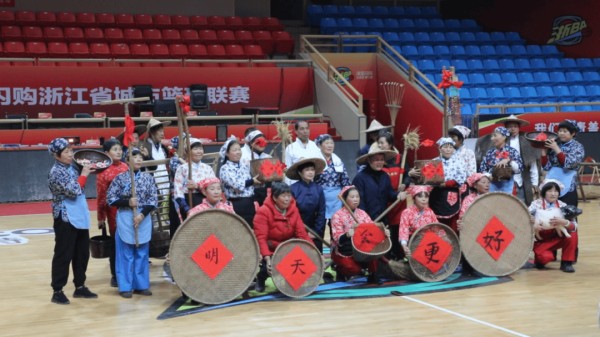 12月18日,在我市体育馆内,石柱镇下杨村的村民们正以质朴又昂扬的姿态排练一场别出心裁的农具秀《在希望的田野上》,为即将打响的“浙BA”赛事,拉开了充满浓浓乡土气息的助威序幕。