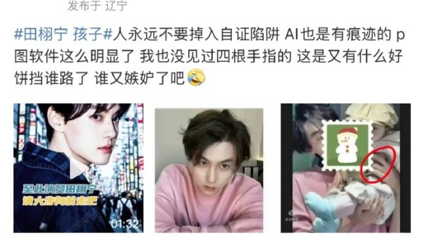 田栩宁抱孩子照被质疑AI合成,网友指其仅露四指