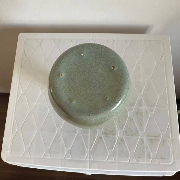 它的珍贵,首先源于其登峰造极且近乎苛刻的制作工艺。汝窑,作为宋代五大名窑之首,其烧造时间极为短暂,约在北宋晚期,且专为宫廷御用,故有“纵有家财万贯,不及汝瓷一片”之说。这件盘口瓶的诞生,是宋代制瓷技艺在特定历史条件下达到巅峰的见证。其胎体选用优质瓷土,淘洗极其精细,胎质紧密,叩之声如磬鸣。汝窑的最大成就与奥秘,在于其釉料的配方与烧成技术。其釉是一种典型的石灰碱釉,其中可能含有微量铁元素,在特定的还原焰气氛中烧成,方能呈现这种独一无二的天青色。烧造汝瓷,对窑温、窑内氧气含量(还原气氛)的掌控要求达到了极致精密的地步。温度稍高或稍低,气氛稍有偏差,釉色便会偏离理想的天青,或泛绿,或泛灰,前功尽弃。其满釉支烧的工艺也是一绝。为了追求器物整体釉色的完美,工匠采用细小的支钉支撑器足,送入窑中烧造。出窑后,仅在底足留下如芝麻粒般细小而不易察觉的支钉痕,使器物除底足支点外通体满釉,光洁无瑕。这种不惜工本、追求极致的工艺,体现了宋代官窑不计成本、只为成就艺术典范的皇家气度与工匠精神。