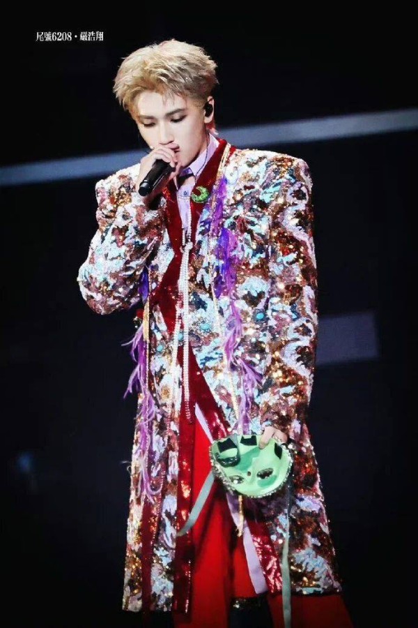 严浩翔这场《SHAKE》的 MENG HUITING 定制亮片礼服,是把 “浮夸” 变成 “王者铠甲” 的独家示范 —— 不是礼服本身闪耀,是他的气场,让每片亮片的光都长在了舞台张力里,独一无二。