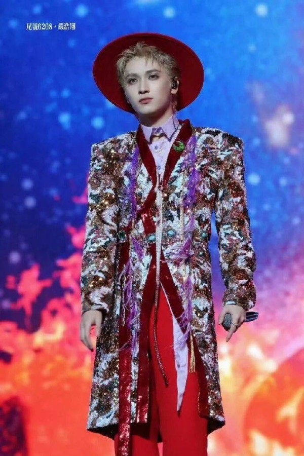 内娱舞台的 “浮夸陷阱”,是亮片越多越显俗,但严浩翔的破局点在于:舞台造型的高级,从不是 “衣服衬人”,是 “人让衣服有了魂”。