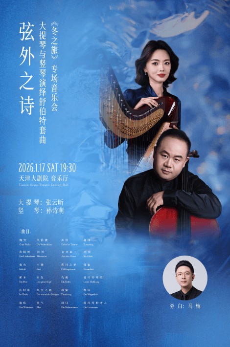 1月17日,张云昕等艺术家将以大提琴、竖琴与念白演绎舒伯特《冬之旅》,呈现创新音乐体验。