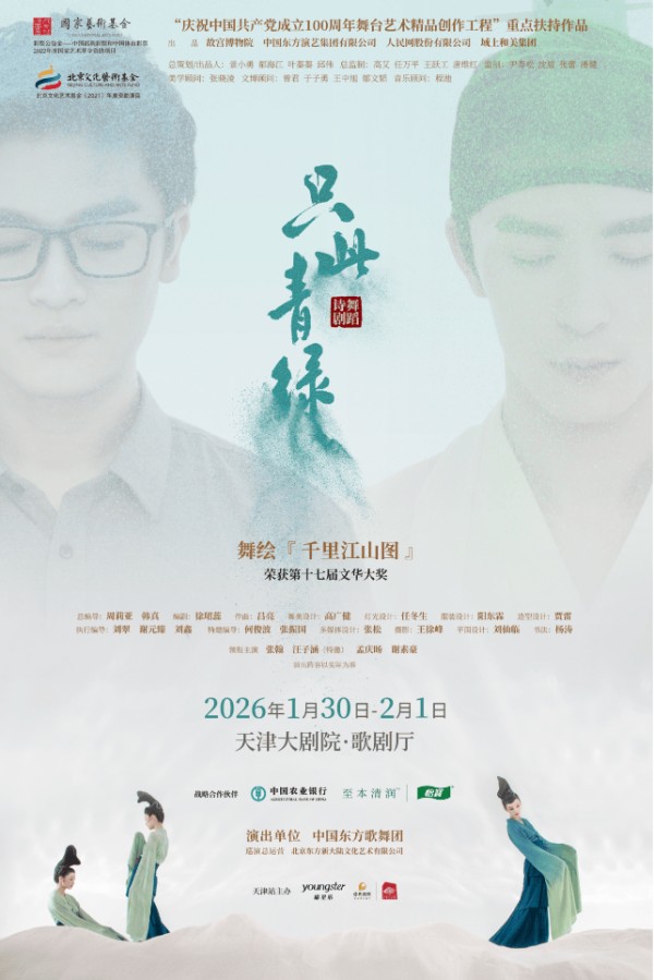 1月30日至2月1日,中国东方歌舞团将在歌剧厅上演舞蹈诗剧《只此青绿》——舞绘《千里江山图》。该剧以北宋画家王希孟的《千里江山图》为灵感来源,通过舞蹈的形式展现了中华大地的壮丽景色与文化底蕴。