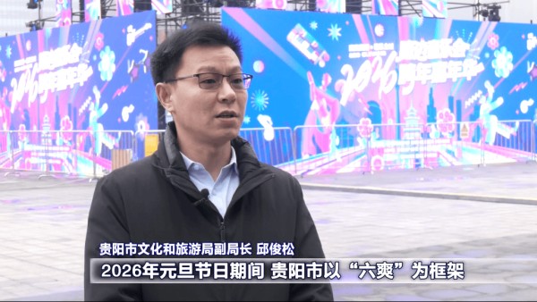 贵阳市文化和旅游局副局长 邱俊松:为了丰富市民游客的节日生活,2026年元旦节日期间,贵阳市以“六爽”为框架,组织了覆盖全域各区县丰富多彩的活动,欢迎大家到贵阳跨年。