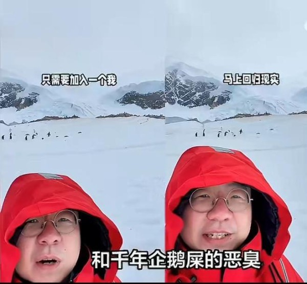当然,就算嘴巴上再吐槽——无人清理的上千年老屎臭味的企鹅,李诞也还是跟他们远远地合上影了。毕竟来都来了,大老远跑一趟,再吐槽对方,该合照还是不能放过。